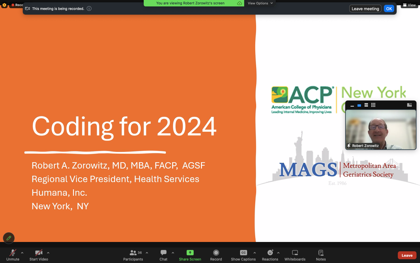 MAGS - NYACP Webinar "Recent Changes To Medicare Coding" March 6, 2024